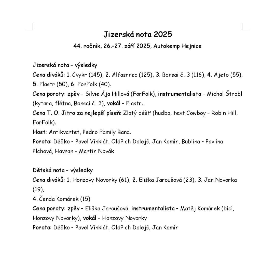 Ahoj kamarádi, pořádáme každoročně jeden z nejstarších trampský festivalů Jizerská nota. Koná se vždy srdci Jizerských hor, poslední zářijový víkend, v autokempu v Hejnicích. Těšíme se na Vás.